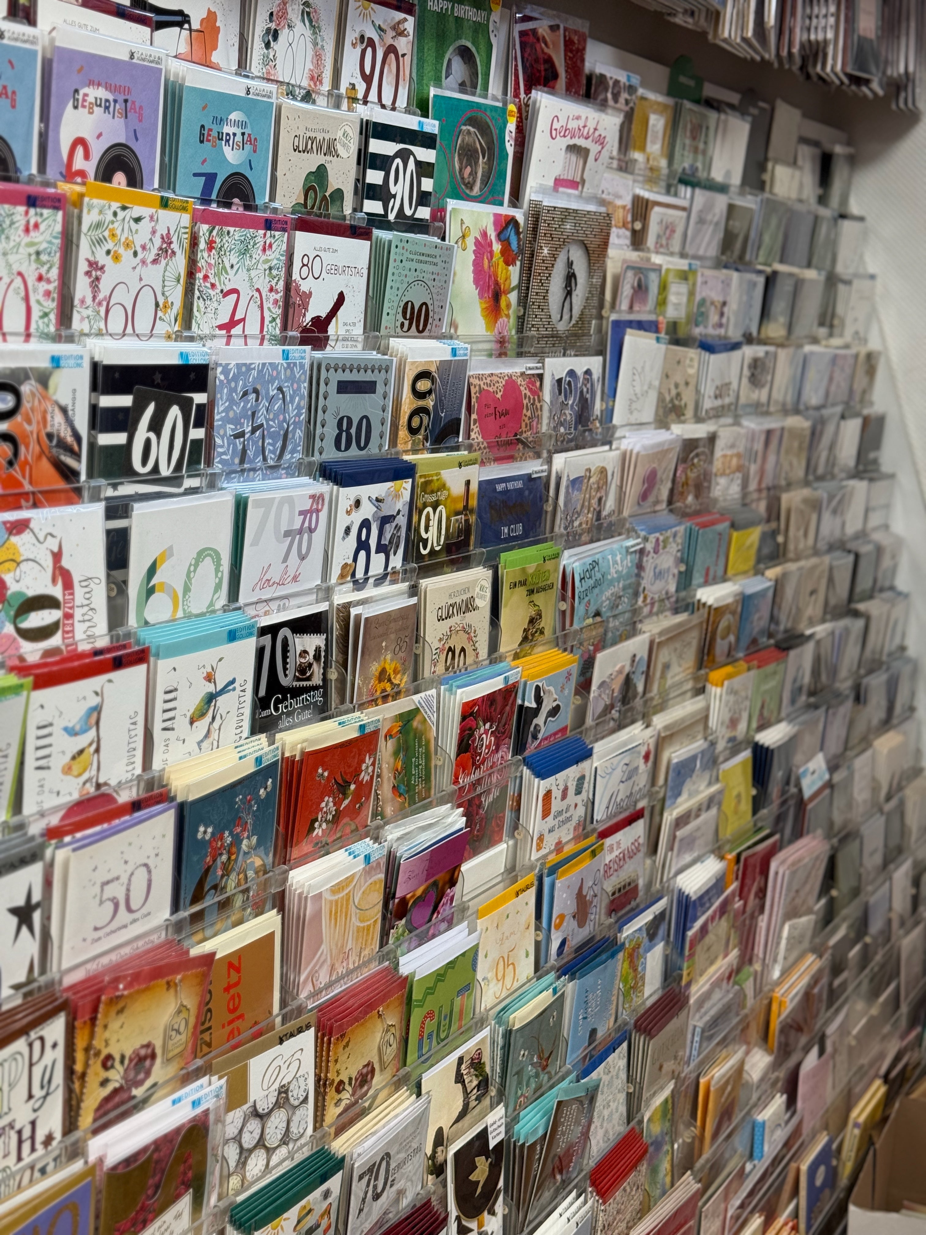 So ein schöner kleiner Bastel- und Schreibwarenladen. Hier bekommt man alles, mega viele Glückwunschkarten etc. und das alles mit persönlicher Beratung durch den Inhaber.